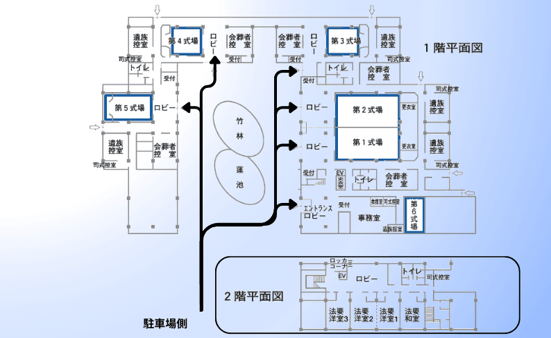 | 式場 【第1式場】 【第2式場】 | 150人用(椅子席) 会葬者控室有 | 通夜等 午後3時30分から午後9時 告別式 午前9時から指定した時間(最長午後3時まで) |